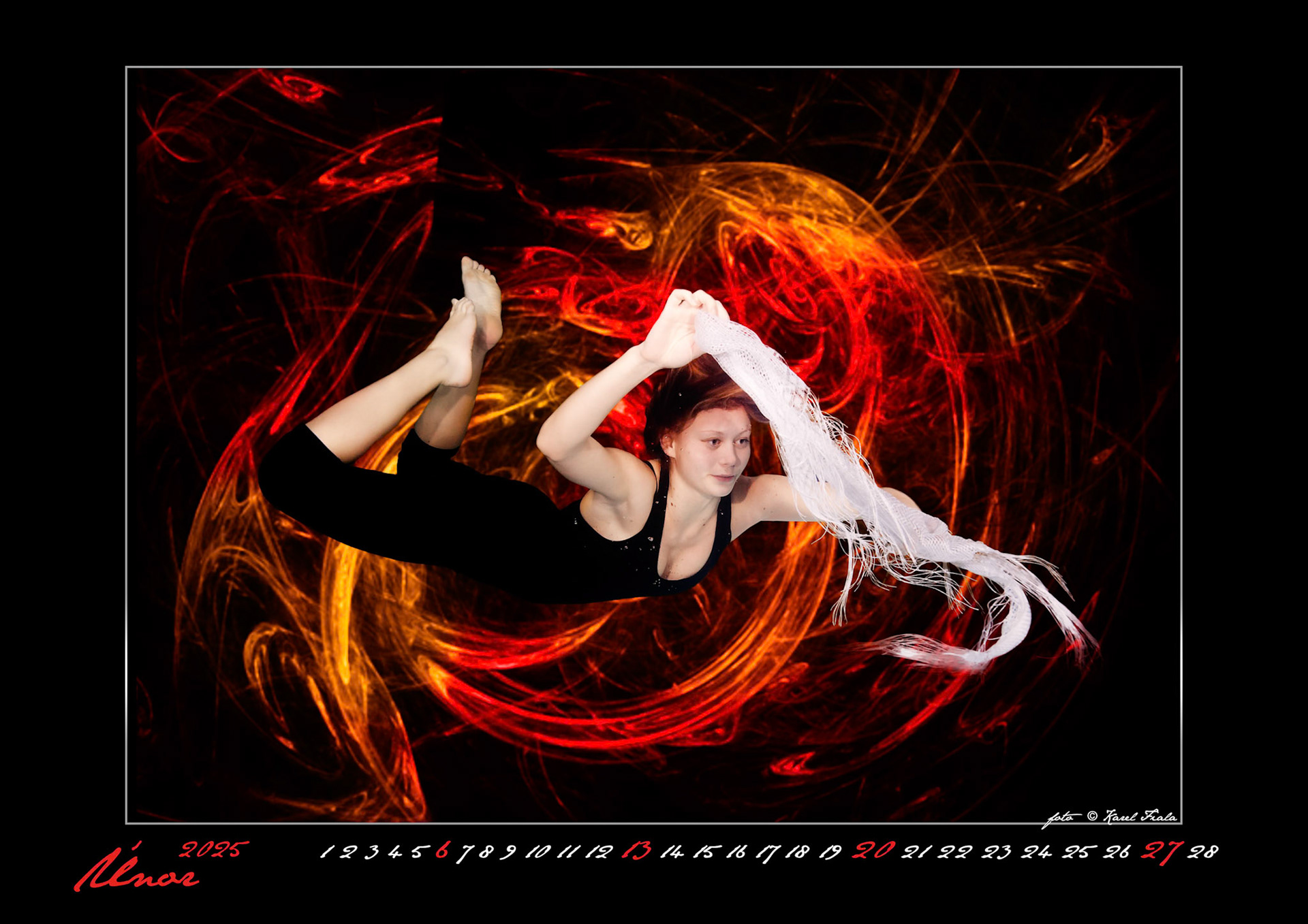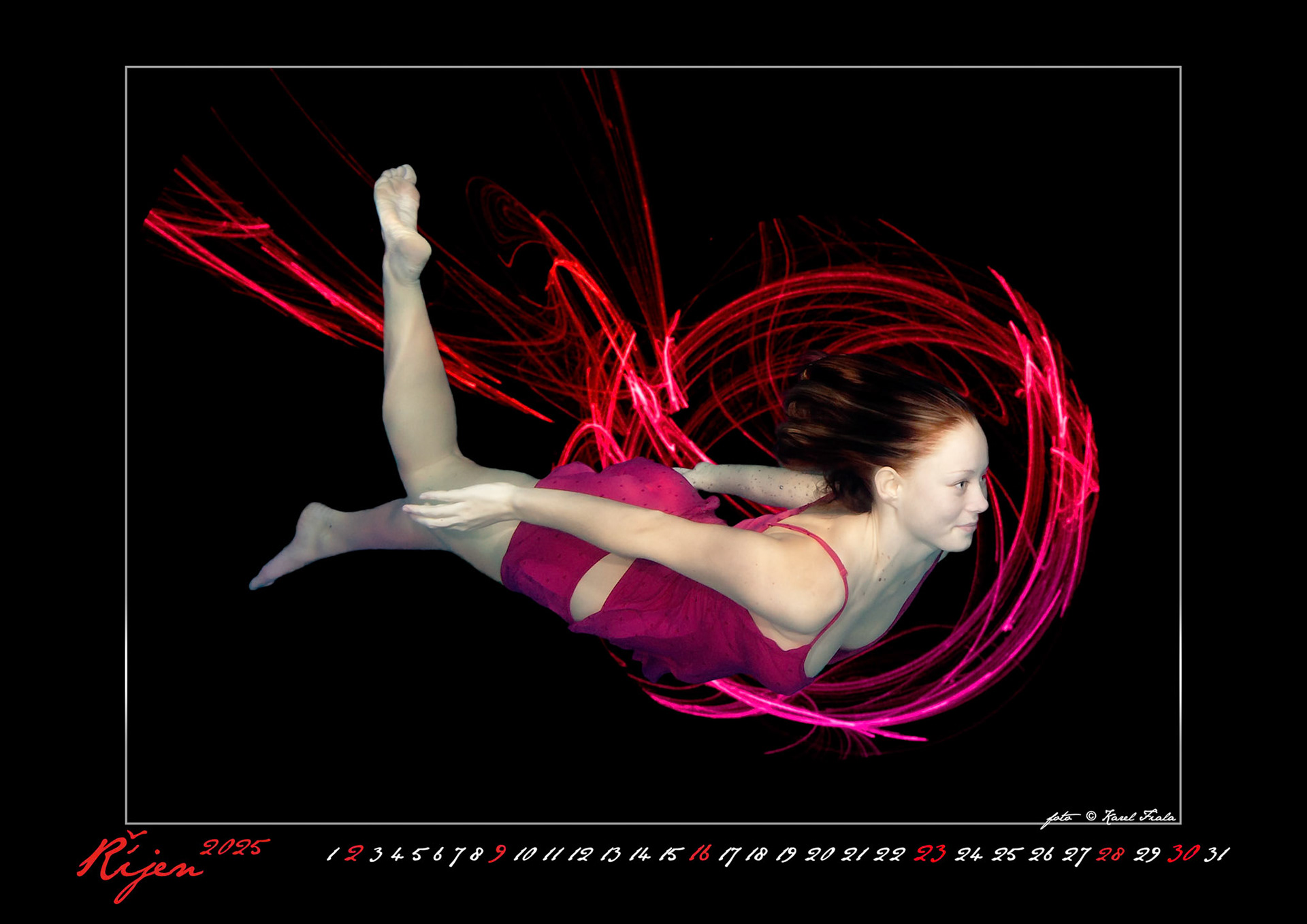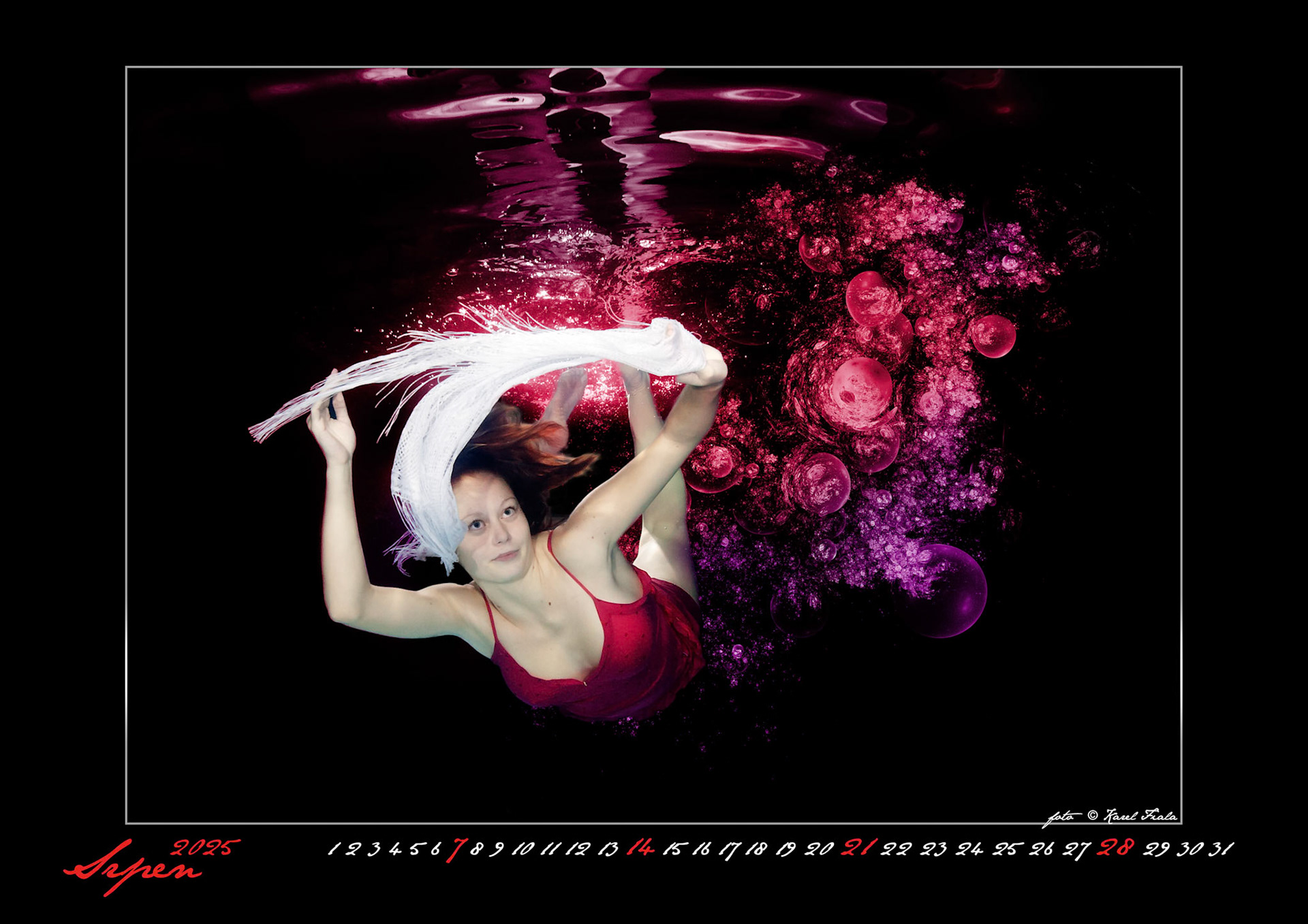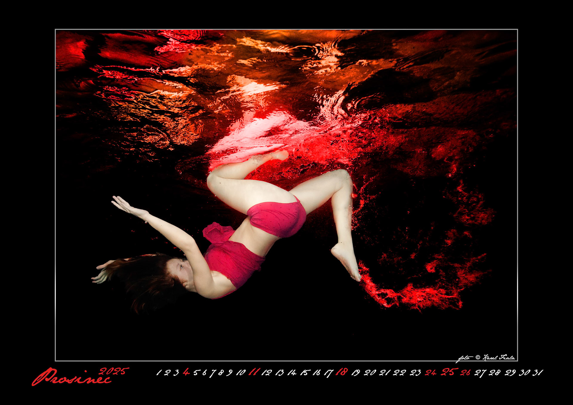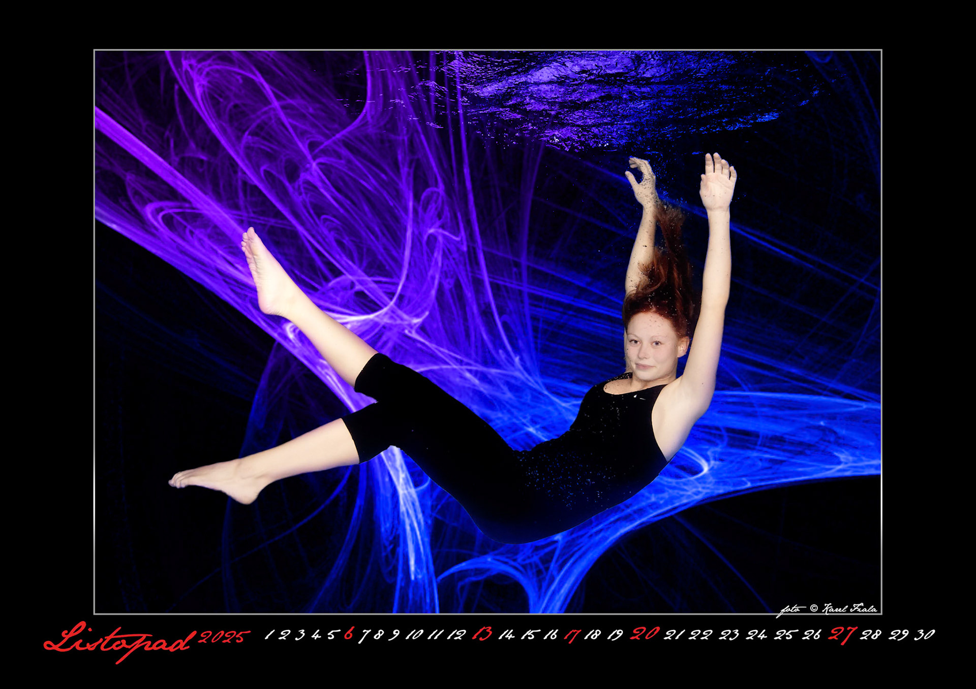 Tato série dvanácti autorských fotografií vznikla jako unikátní osobní projekt a kalendář. Modelka se vznáší v temnotě pod hladinou, zatímco prostor za ní ožívá světelnými efekty inspirovanými polární září. Každý snímek kombinuje eleganci šatů a spodního prádla s beztížným stavem, čímž vytváří snovou až nadpozemskou atmosféru.